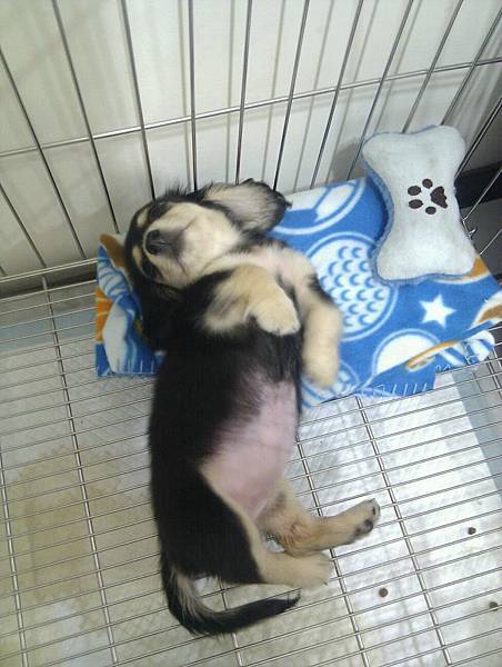 啥姿勢~哈哈 貝果剛回來就睡到翻肚肚~XD